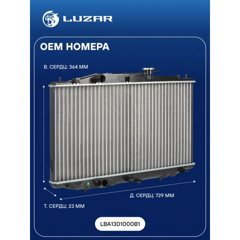 Радиатор охлаждения для автомобилей Breez (07-) 1.3i/1.6i Характеристики: Артикул: LRc 3006 OEM номера: LBA1301000B1 Трансмиссия: MT Кондиционер: +/- Длина сердцевины, мм: 729 Высота сердцевины, мм: 364 Толщина сердцевины, мм: 23 Тип сердцевины: сборная Подходит для авто: Lifan Breez (07-) Для проверки применяемости отправьте VIN автомобиля через вкладку "Есть вопросы о товаре?" Комплектация: Паспорт изделия Радиатор охлаждения Гарантия: от 1 года.