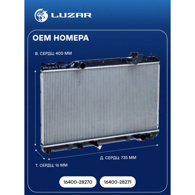 Радиатор охлаждения для автомобилей Camry (01-) MT Характеристики: Артикул: LRc 1970 OEM номера: 16400-28270, 16400-28271 Трансмиссия: MT Кондиционер: +/- Длина сердцевины, мм: 735 Высота сердцевины, мм: 400 Толщина сердцевины, мм: 16 Сопутствующий товар: Радиаторы кондиционера (конденсеры): LRAC 1970 Сопутствующий товар: Крышки... Читать полностью →