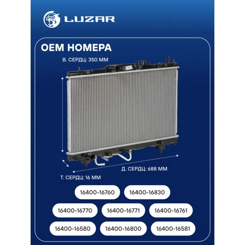 Радиатор охлаждения для автомобилей Carina (96-)/Caldina (97-)/Corona (96-) AT LRc 19152 LUZAR