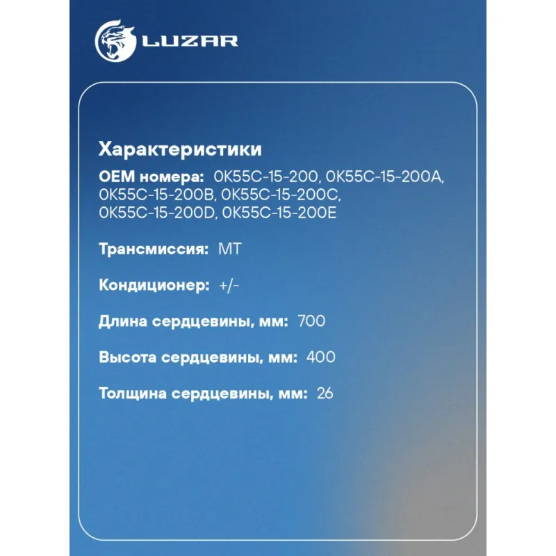 Радиатор охлаждения для автомобилей Carnival (98-) MT LRc 08C5 LUZAR