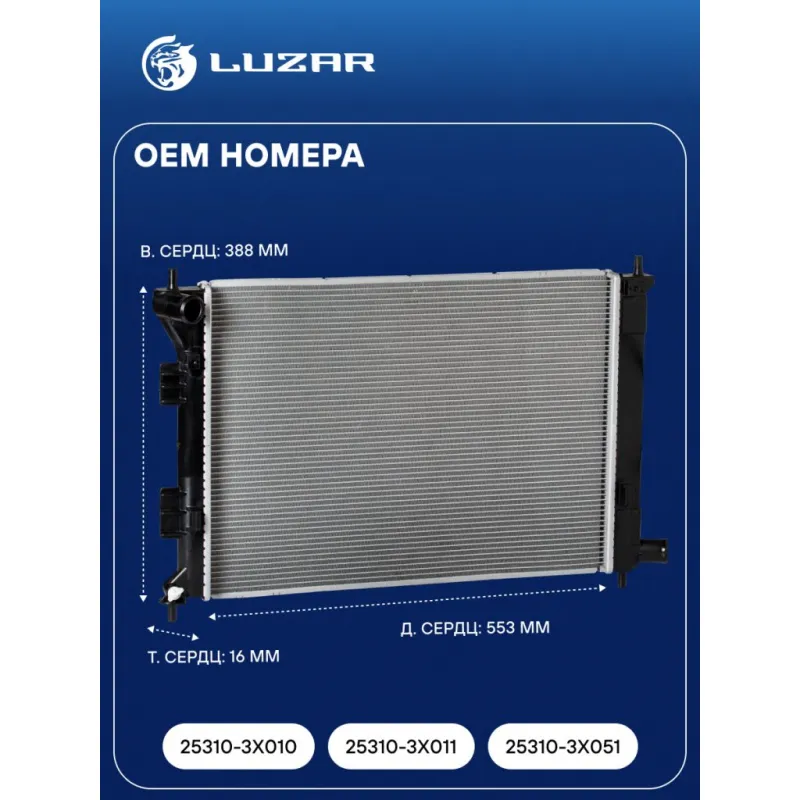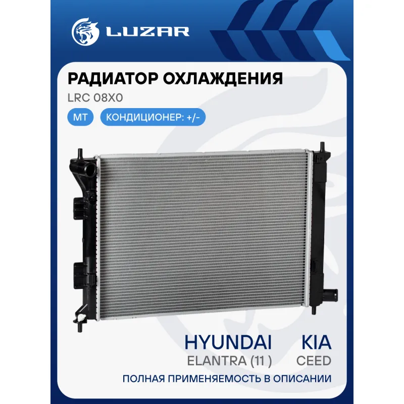 Радиатор охлаждения для автомобилей CEED/Elantra (11-) MT Характеристики: Артикул: LRc 08X0 OEM номера: 25310-3X010, 25310-3X011, 25310-3X051 Трансмиссия: MT Кондиционер: +/- Длина сердцевины, мм: 553 Высота сердцевины, мм: 388 Толщина сердцевины, мм: 16 Сопутствующий товар: Электровентиляторы охлаждения: LFK 08X0 Сопутствующий товар: Радиаторы кондиционера (конденсеры): LRAC 08H2; LRAC 08X0; LRAC 08X6 Подходит для авто: Hyundai i30 II (11-), Elantra V (11-) Kia CEE'D (12-), Cerato III (13-), Soul I (08-) Для проверки применяемости отправьте VIN автомобиля через вкладку "Есть вопросы о товаре?" Комплектация: Радиатор охлаждения Паспорт изделия Гарантия: от 1 года.