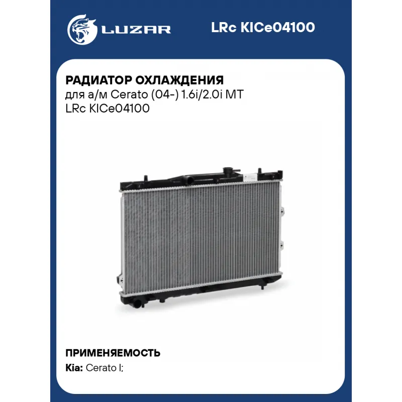 Радиатор охлаждения для а/м Cerato (04-) 1.6i/2.0i MT Характеристики: Артикул: LRc KICe04100 OEM номера: 25310-2F000, 25310-2F040, 25310-2F061 Материал сердцевины: алюминий Материал бачков: пластик Тип сердцевины: паяная Трансмиссия: MT Кондиционер: +/- Длина сердцевины, мм: 668 Высота сердцевины, мм: 375 Толщина сердцевины, мм: 16 Сопутствующий товар: Электровентиляторы охлаждения: LFK 0820 Сопутствующий товар: Электровентиляторы кондиционера: LFAC 0820 Сопутствующий товар: Радиаторы кондиционера (конденсеры): LRAC 08F2 Сопутствующий товар: Крышки (пробки) радиатора: LL 1905 Подходит для авто: Kia Cerato I (04-) Для проверки применяемости отправьте VIN автомобиля через вкладку "Есть вопросы о товаре?" Комплектация: Радиатор охлаждения Паспорт изделия Гарантия: от 1 года.
