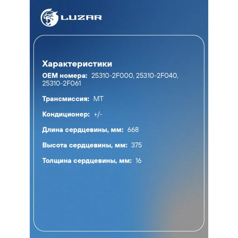 | Сопутствующий товар: Радиаторы кондиционера (конденсеры) | LRAC 08F2 |