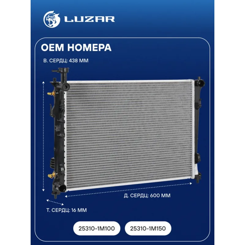 Радиатор охлаждения для а/м Cerato (09-) 4AT Характеристики: Артикул: LRc 081M1 OEM номера: 25310-1M100, 25310-1M150 Материал сердцевины: алюминий Материал бачков: пластик Тип сердцевины: паяная Трансмиссия: 4AT Кондиционер: +/- Длина сердцевины, мм: 600 Высота сердцевины, мм: 438 Толщина сердцевины, мм: 16 Сопутствующий товар: ... Читать полностью →