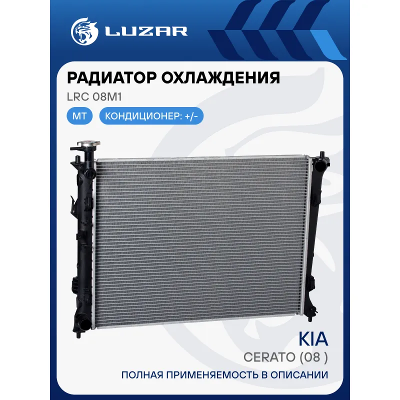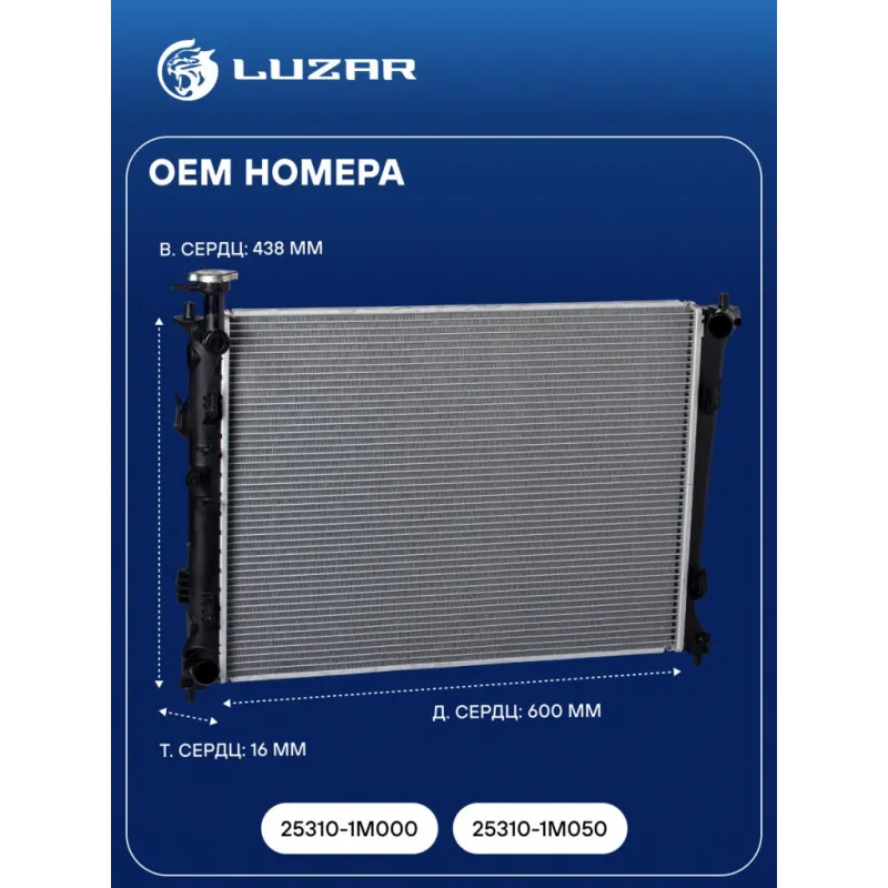 Радиатор охлаждения для автомобилей Cerato (08-) MT Характеристики: Артикул: LRc 08M1 OEM номера: 25310-1M000, 25310-1M050 Материал сердцевины: алюминий Материал бачков: пластик Тип сердцевины: паяная Трансмиссия: MT Кондиционер: +/- Длина сердцевины, мм: 600 Высота сердцевины, мм: 438 Толщина сердцевины, мм: 16 Сопутствующий товар: Электровентиляторы охлаждения: LFK 0830 Сопутствующий товар: Радиаторы кондиционера (конденсеры): LRAC 08M1 Подходит для авто: Kia Cerato II (09-) Для проверки применяемости отправьте VIN автомобиля через вкладку "Есть вопросы о товаре?" Комплектация: Радиатор охлаждения Паспорт изделия Гарантия: от 1 года.