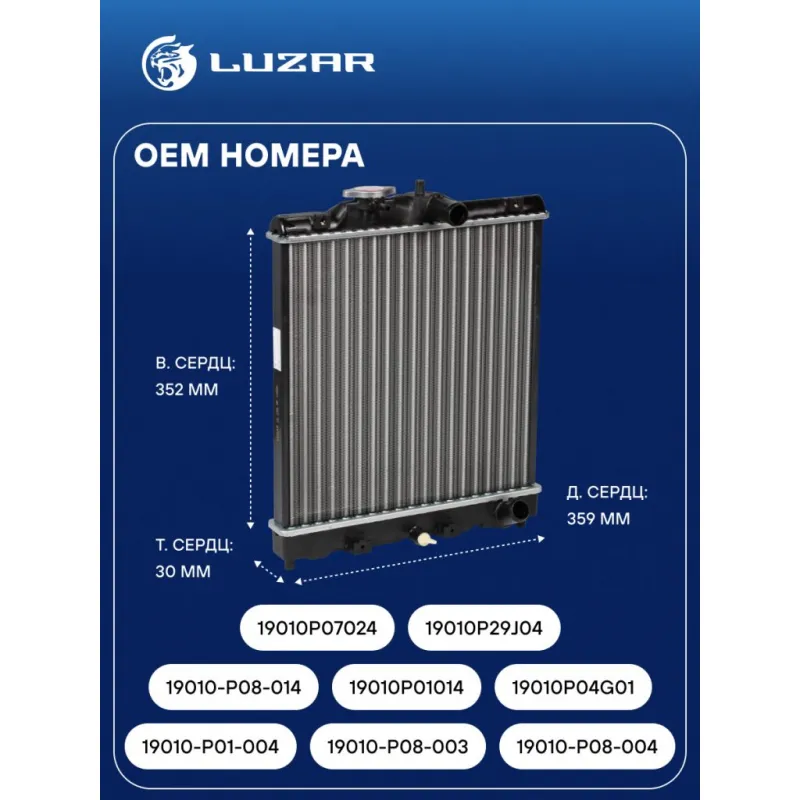 Радиатор охлаждения для автомобилей Civic V (91-)/Civic VI (95-)/HR-V (98-) MT Характеристики: Артикул: LRc 2309 OEM номера: 19010-P01-004, 19010-P08-003, 19010-P08-004, 19010-P08-014, 19010P01014, 19010P04G01, 19010P07024, 19010P29J04 Трансмиссия: MT Кондиционер: +/- Длина сердцевины, мм: 359 Высота сердцевины, мм: 352 Толщина сердцевины, мм: 30 Тип сердцевины: сборная Сопутствующий товар: Радиаторы кондиционера (конденсеры): LRAC 2311 Сопутствующий товар: Крышки (пробки) радиатора: LL 0809; LL 1902; LL 1905 Подходит для авто: Honda Civic V (91-), Civic VI (95-) Для проверки применяемости отправьте VIN автомобиля через вкладку "Есть вопросы о товаре?" Комплектация: Радиатор охлаждения Паспорт изделия Гарантия: от 1 года.