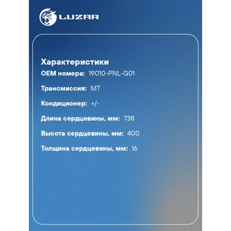 Радиатор охлаждения для автомобилей CR-V (02-) MT LRc 23NL LUZAR
