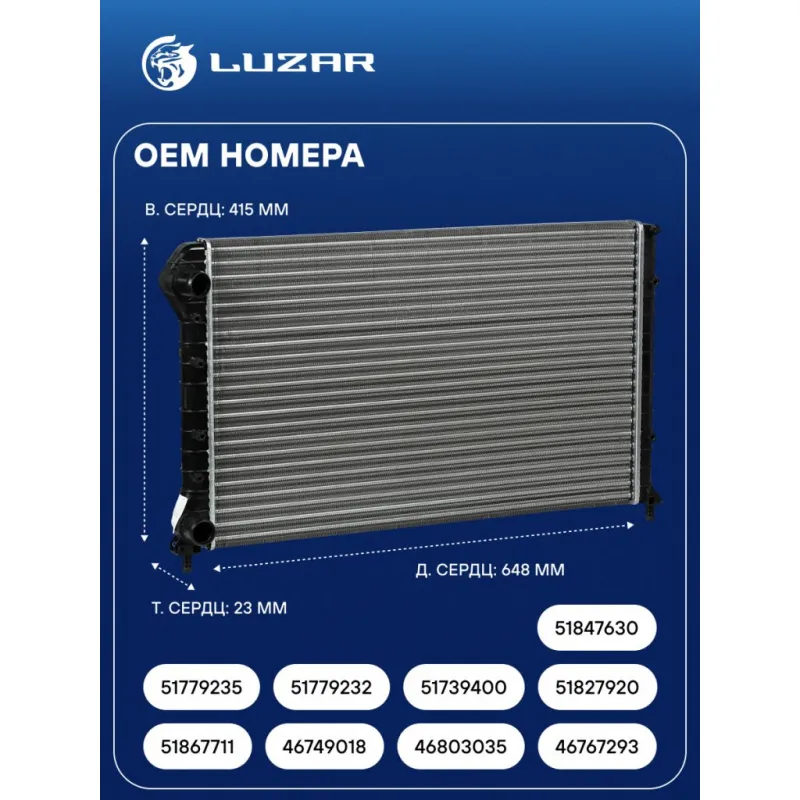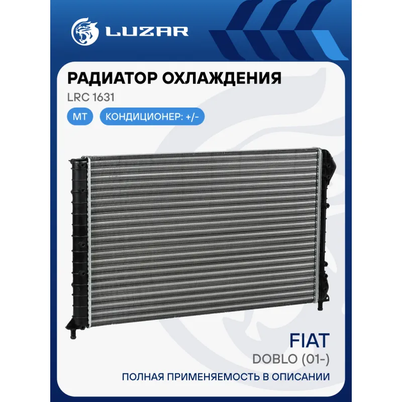 Радиатор охлаждения для автомобилей Doblo (01-) A/C+ Характеристики: Артикул: LRc 1631 OEM номера: 51867711, 46749018, 46803035, 46767293, 51779235, 51779232, 51739400, 51827920, 51847630, 51934381 Трансмиссия: MT Кондиционер: +/- Длина сердцевины, мм: 648 Высота сердцевины, мм: 415 Толщина сердцевины, мм: 23 Тип сердцевины: сборная Материал сердцевины: алюминий Материал бачков: пластик Подходит для авто: Fiat Doblo I (01-) Для проверки применяемости отправьте VIN автомобиля через вкладку "Есть вопросы о товаре?" Комплектация: Радиатор охлаждения Паспорт изделия Гарантия: от 1 года.