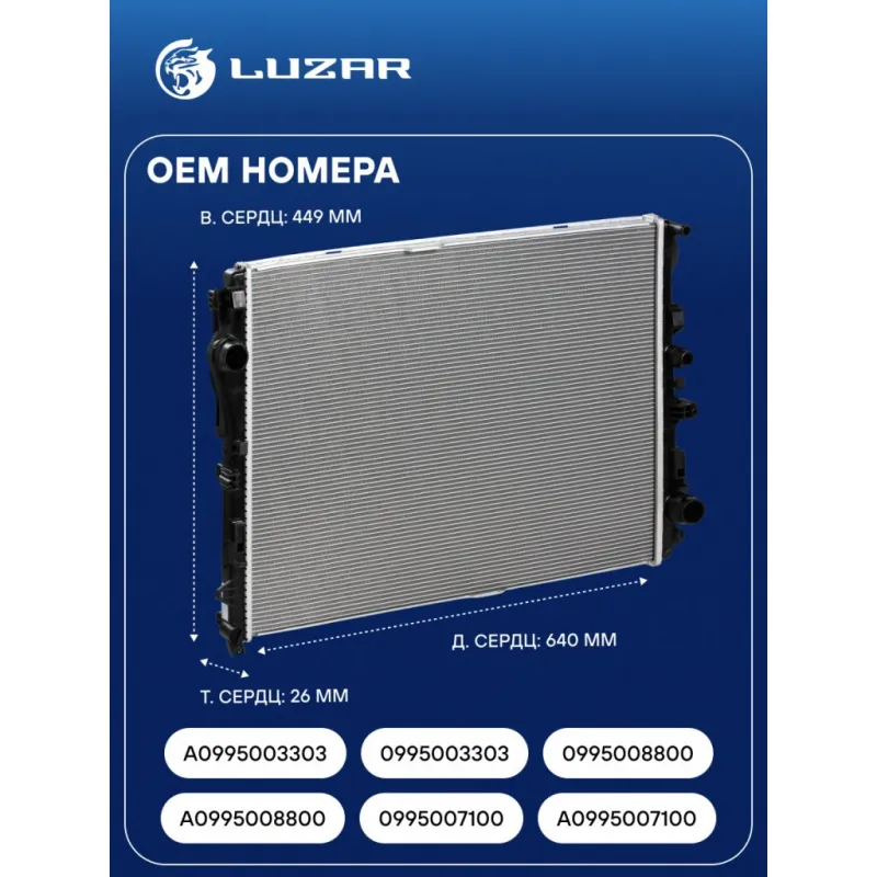 Радиатор охлаждения для автомобилей E-class (W213, 238) (16-)/S-class (W222, 217) (13-)/GLC-class (X253) (15-) M/A Характеристики: Артикул: LRc 15130 OEM номера: A0995003303, 0995003303, 0995008800, A0995008800, 0995007100, A0995007100 Трансмиссия: MT/AT Кондиционер: +/- Длина сердцевины, мм: 640 Высота сердцевины, мм: 499 Толщина сердцевины, мм: 26 Подходит для авто: Mercedes-Benz E-class W213 (16-), GLC (15-), S-Classe W222 C217 (13-) Для проверки применяемости отправьте VIN автомобиля через вкладку "Есть вопросы о товаре?" Комплектация: Радиатор охлаждения Паспорт изделия Гарантия: от 1 года.