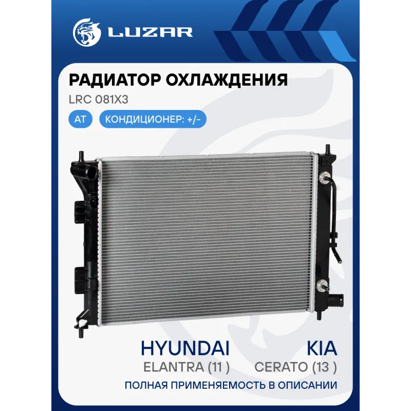 Радиатор охлаждения для автомобилей Elantra (11-)/Cerato (13-) Характеристики: Артикул: LRc 081X3 OEM номера: 25310-3X100, 25310-3X101 Трансмиссия: AT Кондиционер: +/- Длина сердцевины, мм: 553 Высота сердцевины, мм: 388 Толщина сердцевины, мм: 22 Сопутствующий товар: Электровентиляторы охлаждения: LFK 08X0 Сопутствующий товар: Радиаторы кондиционера (конденсеры): LRAC 08H2; LRAC 08X0; LRAC 08X6 Подходит для авто: Hyundai Elantra V (11-) Kia Cerato III (13-), Soul I (08-) Для проверки применяемости отправьте VIN автомобиля через вкладку "Есть вопросы о товаре?" Комплектация: Радиатор охлаждения Паспорт изделия Гарантия: от 1 года.
