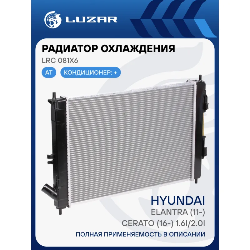 Радиатор охлаждения для автомобилей Elantra (11-)/Cerato (16-) 1.6i/2.0i AT LRc 081X6 LUZAR