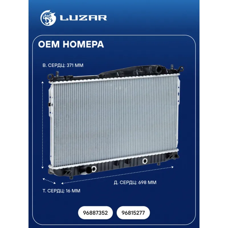 Радиатор охлаждения для автомобилей Epica (06-) AT Характеристики: Артикул: LRc 05177 OEM номера: 96887352, 96815277 Трансмиссия: AT Кондиционер: +/- Длина сердцевины, мм: 698 Высота сердцевины, мм: 371 Толщина сердцевины, мм: 16 Сопутствующий товар: Электровентиляторы охлаждения: LFK 0576 Сопутствующий товар: Радиаторы кондиционера (конденсеры): LRAC 0576 Сопутствующий товар: Крышки (пробки) расширительного бачка: LL 0563 Подходит для авто: Daewoo Tosca (06-), Magnus (00-) Chevrolet Epica (06-), Evanda (03-) Для проверки применяемости отправьте VIN автомобиля через вкладку "Есть вопросы о товаре?" Комплектация: Радиатор охлаждения Паспорт изделия Гарантия: от 1 года.