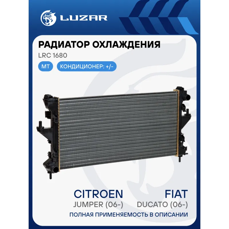 Радиатор охлаждения для автомобилей Fiat Ducato (06-)/Citroen Jumper (06-)/Peugeot Boxer (06-) (выс. сердц. 378мм) Характеристики: Артикул: LRc 1680 OEM номера: 1342588080, 1330.L2, 1330.W1, 1330.S9, 1331.RT, 1330.Z4, 1333.C7, 1330S3, 1333C6, 1333C8, 1330Q5, 13425880, 1362306080, 1340359080, 1362305080, 1342688080, 1361274080, 1614156780, 1366650080, 1349196080, 1330.Q2, 1330.Q3 Трансмиссия: MT Кондиционер: +/- Длина сердцевины, мм: 780 Высота сердцевины, мм: 378 Толщина сердцевины, мм: 34 Тип сердцевины: сборная Сопутствующий товар: Электровентиляторы охлаждения: LFc 1680; LFK 1680 Сопутствующий товар: Радиаторы кондиционера (конденсеры): LRAC 1680 Подходит для авто: Fiat Ducato III (06-) Citroen Jumper (06-) Peugeot Boxer (06-) Для проверки применяемости отправьте VIN автомобиля через вкладку "Есть вопросы о товаре?" Комплектация: Радиатор охлаждения Паспорт изделия Гарантия: от 1 года.