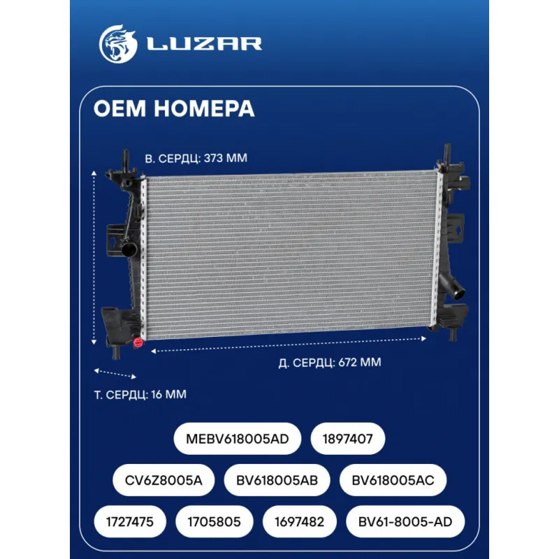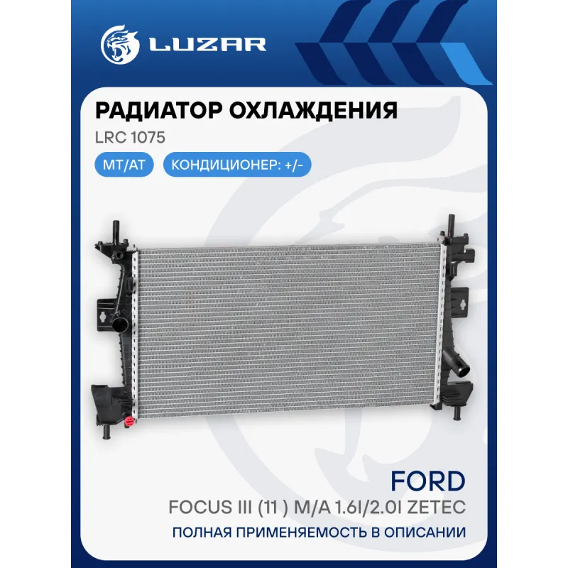 Радиатор охлаждения для автомобилей Focus III (11-) M/A 1.6i/2.0i Zetec Характеристики: Артикул: LRc 1075 OEM номера: 1727475, 1705805, 1697482, BV61-8005-AD, CV6Z8005A, BV618005AB, BV618005AC, MEBV618005AD, 1897407 Трансмиссия: MT/AT Кондиционер: +/- Длина сердцевины, мм: 672 Высота сердцевины, мм: 373 Толщина сердцевины, мм: 16 Сопутствующий товар: Электровентиляторы охлаждения: LFK 1075 Сопутствующий товар: Радиаторы кондиционера (конденсеры): LRAC 1013; LRAC 1075 Сопутствующий товар: Патрубки охлаждения (комплект): LPK 10751, LPK 10752 Сопутствующий товар: Блоки охлаждения (радиатор + конденсор + вентилятор): LRK 1075 Подходит для авто: Ford Focus III (11-), C-Max (11-) Для проверки применяемости отправьте VIN автомобиля через вкладку "Есть вопросы о товаре?" Комплектация: Радиатор охлаждения Паспорт изделия Гарантия: от 1 года.