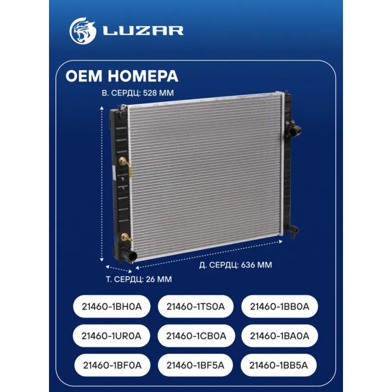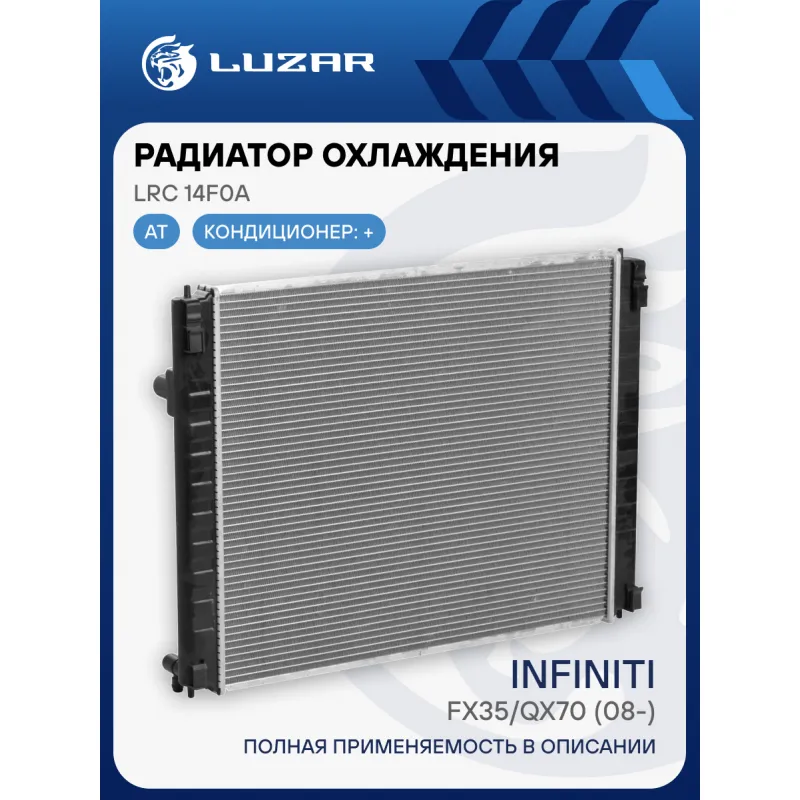Радиатор охлаждения для автомобилей FX35/QX70 (08-) G Характеристики: Артикул: LRc 14F0A OEM номера: 21460-1BF0A, 21460-1BF5A, 21460-1BB5A, 21460-1UR0A, 21460-1CB0A, 21460-1BA0A, 21460-1BB0A, 21460-1BH0A, 21460-1TS0A Трансмиссия: AT Кондиционер: + Длина сердцевины, мм: 636 Высота сердцевины, мм: 528 Толщина сердцевины, мм: 26 Тип сердцевины: паяная Материал сердцевины: алюминий Материал бачков: пластик Сопутствующий товар: Электровентиляторы охлаждения: LFK 1435 Сопутствующий товар: Радиаторы кондиционера (конденсеры): LRAC 14F0A Подходит для авто: Infiniti FX II (08-), EX (07-), QX70 (13-), QX50 (13-) Для проверки применяемости отправьте VIN автомобиля через вкладку "Есть вопросы о товаре?" Комплектация: Радиатор охлаждения Паспорт изделия Гарантия: от 1 года.
