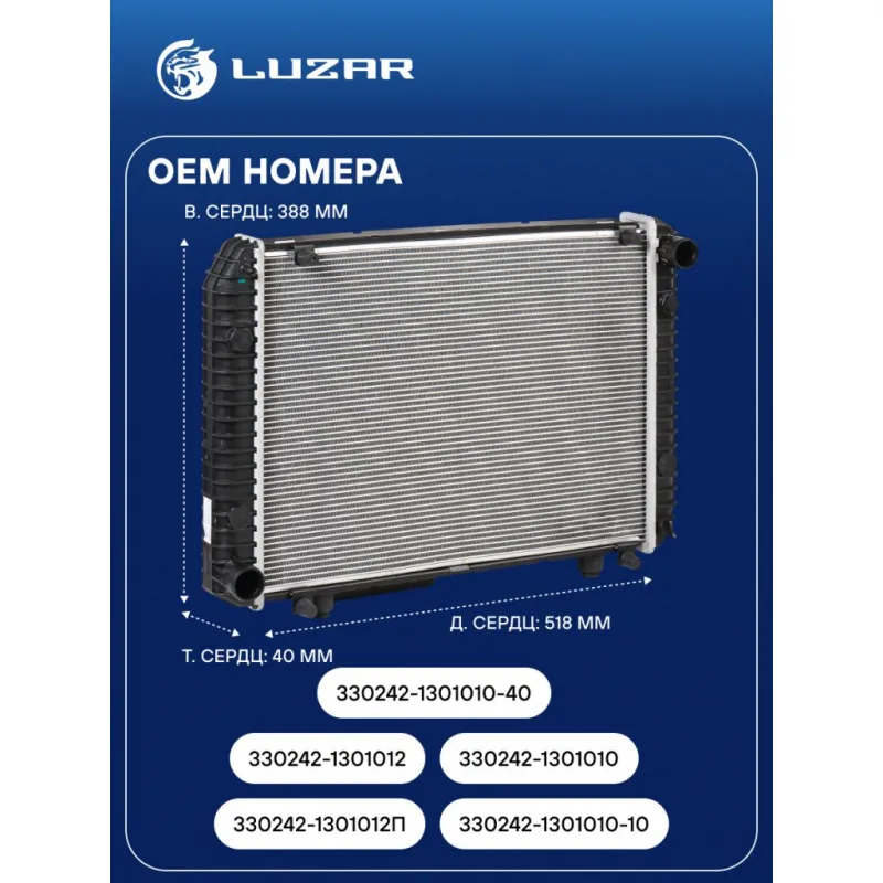 | Аналог | LRc 0324 (сборная сердцевина), LRc 0342b (паяная сердцевина) |