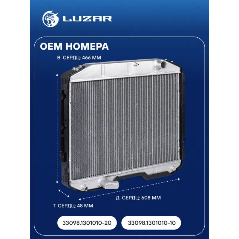 Радиатор охлаждения для автомобилей ГАЗ 33098 с двиг. ЯМЗ 53442 E-4 (без горловины, алюм.) Характеристики: Артикул: LRC 0354 OEM номера: 33098.1301010-20, 33098.1301010-10 Трансмиссия: MT Кондиционер: - Длина сердцевины, мм: 608 Высота сердцевины, мм: 466 Толщина сердцевины, мм: 48 Тип сердцевины: паяная Материал сердцевины: алюминий Материал бачков: алюминий Подходит для авто: ГАЗ 3309 Для проверки применяемости отправьте VIN автомобиля через вкладку "Есть вопросы о товаре?" Комплектация: Радиатор охлаждения Паспорт изделия Гарантия: от 1 года.