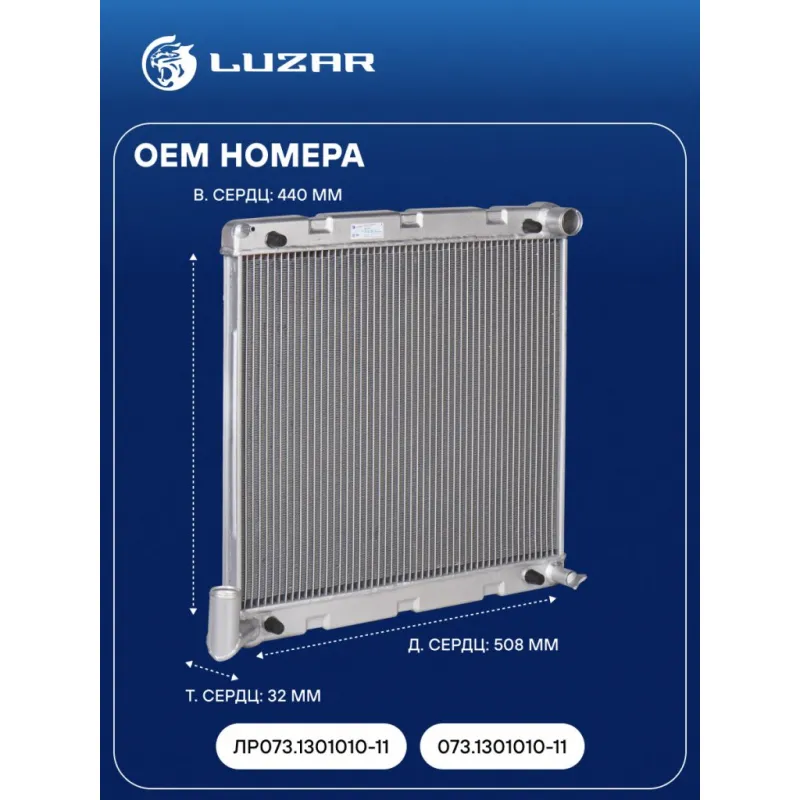 Радиатор охлаждения для автомобилей ГАЗель-Бизнес с дв. Cummins (c климатической системой) Характеристики: Артикул: LRc 0328 OEM номера: ЛР073.1301010-11, 073.1301010-11 Трансмиссия: MT Кондиционер: +/- Длина сердцевины, мм: 508 Высота сердцевины, мм: 440 Толщина сердцевины, мм: 32 Материал бачков: алюминий Сопутствующий товар: Патрубки охлаждения (комплект): LPK 03028 Аналог: LRc 03028b (универсальный) Подходит для авто: ГАЗ 33027, Gazelle-Business, 33025 Для проверки применяемости отправьте VIN автомобиля через вкладку "Есть вопросы о товаре?" Комплектация: Радиатор охлаждения Паспорт изделия Гарантия: от 1 года.