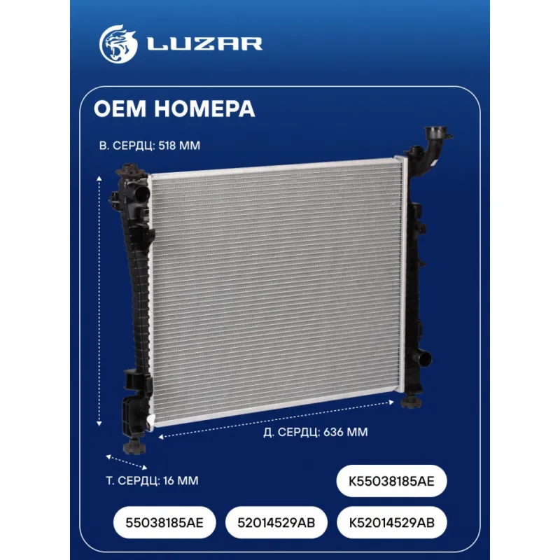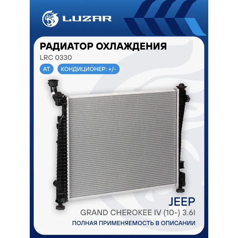 Радиатор охлаждения для автомобилей Grand Cherokee IV (10-) 3.6i AT Характеристики: Артикул: LRc 0330 OEM номера: 55038185AE, 52014529AB, K52014529AB, K55038185AE Трансмиссия: AT Кондиционер: +/- Длина сердцевины, мм: 636 Высота сердцевины, мм: 518 Толщина сердцевины, мм: 16 Сопутствующий товар: Радиаторы кондиционера (конденсеры): LRAC 0303 Подходит для авто: Jeep Grand Cherokee (10-) Для проверки применяемости отправьте VIN автомобиля через вкладку "Есть вопросы о товаре?" Комплектация: Радиатор охлаждения Паспорт изделия Гарантия: от 1 года.