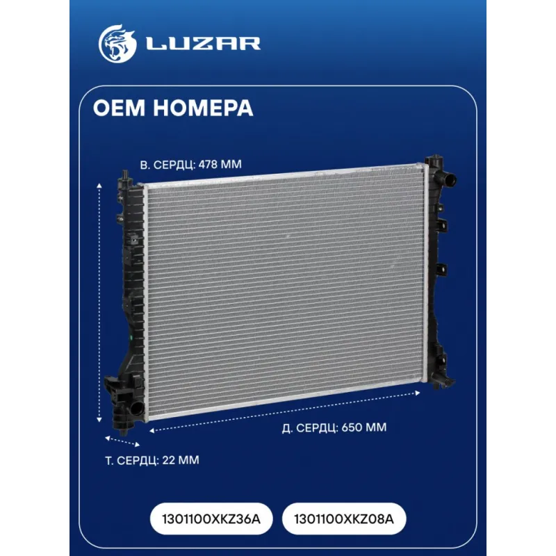 Радиатор охлаждения для автомобилей Haval H6 (14-) 1.5i Характеристики: Артикул: LRc 3008 OEM номера: 1301100XKZ36A, 1301100XKZ08A Трансмиссия: MT/AT Кондиционер: +/- Длина сердцевины, мм: 650 Высота сердцевины, мм: 478 Толщина сердцевины, мм: 22 Подходит для авто: Haval H6 (14-) Для проверки применяемости отправьте VIN автомобиля через вкладку "Есть вопросы о товаре?" Комплектация: Радиатор охлаждения Паспорт изделия Гарантия: от 1 года.