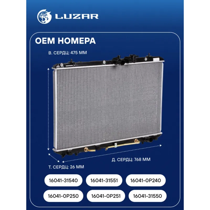 Радиатор охлаждения для автомобилей Highlander (08-) Характеристики: Артикул: LRc 1954 OEM номера: 16041-31540, 16041-31551, 16041-0P240, 16041-0P250, 16041-0P251, 16041-31550 Трансмиссия: AT Кондиционер: +/- Длина сердцевины, мм: 768 Высота сердцевины, мм: 475 Толщина сердцевины, мм: 26 Сопутствующий товар: Электровентиляторы охлаждения: LFK 1954 Сопутствующий товар: Крышки (пробки) радиатора: LL 1902 Подходит для авто: Toyota Highlander (08-) Для проверки применяемости отправьте VIN автомобиля через вкладку "Есть вопросы о товаре?" Комплектация: Радиатор охлаждения Паспорт изделия Гарантия: от 1 года.