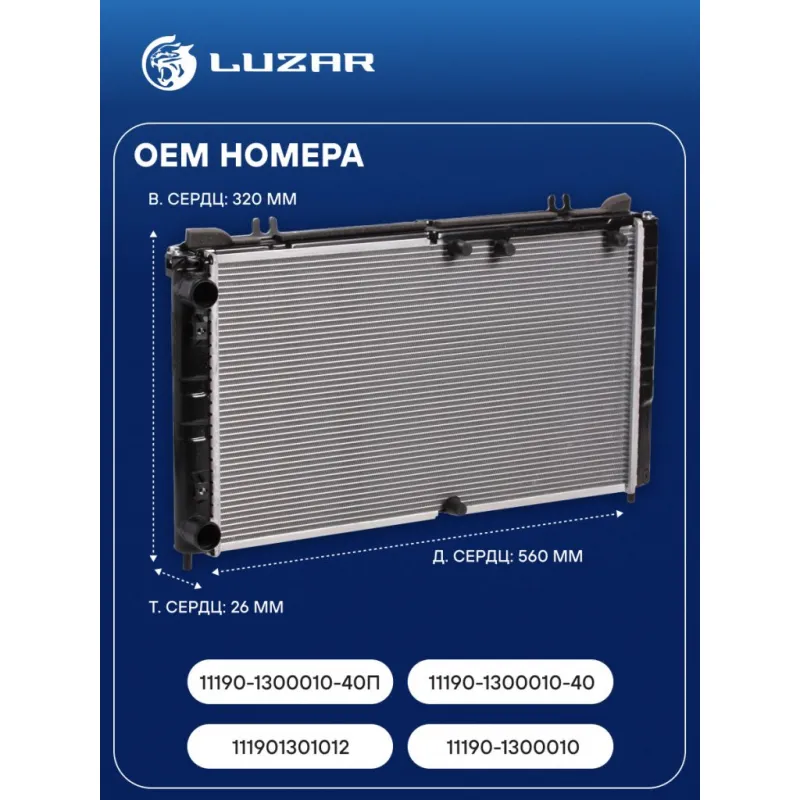 Радиатор охлаждения для автомобилей Калина А/С (тип Panasonic) (паяный) Характеристики: Артикул: LRc 01183 OEM номера: 11190-1300010-40П, 11190-1300010, 11190-1300010-40, 111901301012 Трансмиссия: MT Кондиционер: + Длина сердцевины, мм: 560 Высота сердцевины, мм: 320 Толщина сердцевины, мм: 26 Тип сердцевины: паяная Материал сердцевины: алюминий Материал бачков: пластик Сопутствующий товар: Патрубки охлаждения (комплект): LPK 0118 Аналог: LRc 01182b (сборная сердцевина) Подходит для авто: ВАЗ Kalina (04-), Kalina (04-), Kalina (04-) Для проверки применяемости отправьте VIN автомобиля через вкладку "Есть вопросы о товаре?" Комплектация: Радиатор охлаждения Паспорт изделия Гарантия: от 1 года.