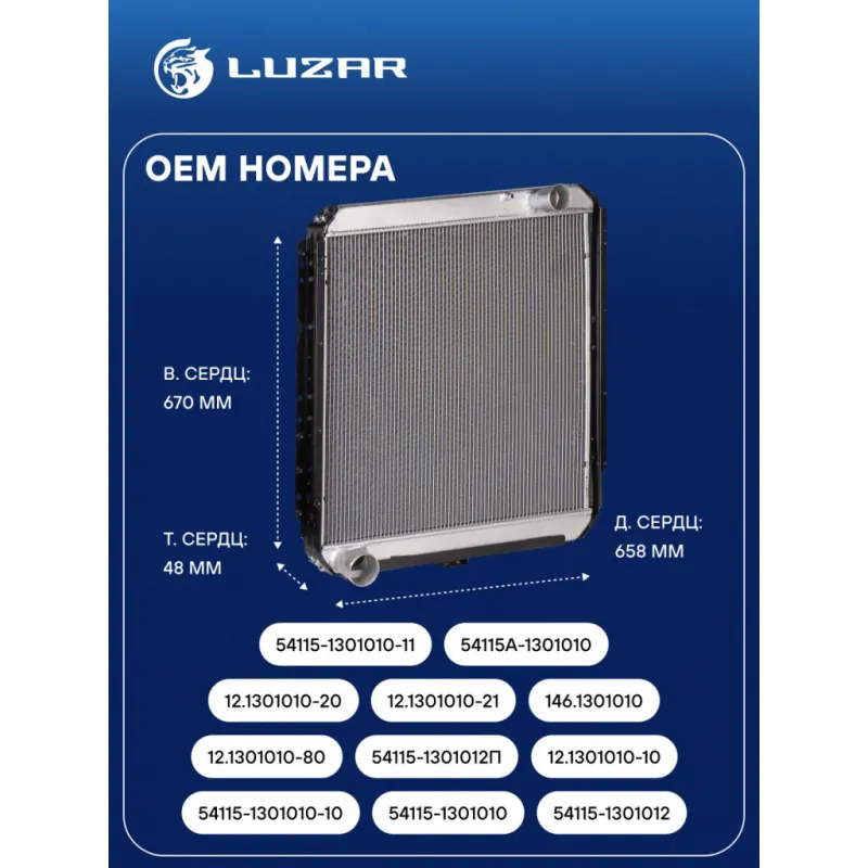 Радиатор охлаждения для автомобилей КАМАЗ с дв. Cummins 6BT/ISBe Характеристики: Артикул: LRc 07151 OEM номера: 54115-1301010-10, 54115-1301010, 54115-1301012, 12.1301010-80, 54115-1301012П, 12.1301010-10, 12.1301010-20, 12.1301010-21, 146.1301010, 54115-1301010-11, 54115А-1301010 Трансмиссия: MT Кондиционер: +/- Длина сердцевины, мм: 658 Высота сердцевины, мм: 670 Толщина сердцевины, мм: 48 Подходит для авто: КамаАЗ 65115, 4325, 65116, 4308 Для проверки применяемости отправьте VIN автомобиля через вкладку "Есть вопросы о товаре?" Комплектация: Радиатор охлаждения Паспорт изделия Гарантия: от 1 года.