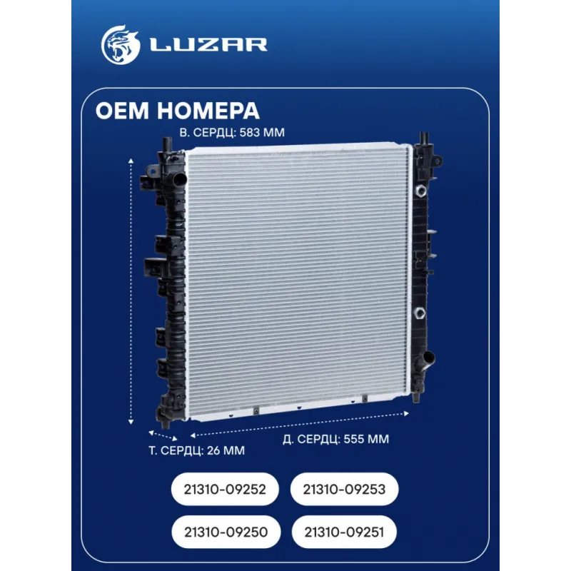 Радиатор охлаждения для автомобилей Kyron/Actyon (05-) 5AT Характеристики: Артикул: LRc 17130 OEM номера: 21310-09250, 21310-09251, 21310-09252, 21310-09253 Материал сердцевины: алюминий Материал бачков: пластик Тип сердцевины: паяная Трансмиссия: AT Кондиционер: +/- Длина сердцевины, мм: 555 Высота сердцевины, мм: 583 Толщина сердцевины, мм: 26 Сопутствующий товар: Электровентиляторы кондиционера: LFAC 1750 Сопутствующий товар: Радиаторы кондиционера (конденсеры): LRAC 1750 Подходит для авто: SsangYong Kyron (05-), Actyon (05-) Для проверки применяемости отправьте VIN автомобиля через вкладку "Есть вопросы о товаре?" Комплектация: Радиатор охлаждения Паспорт изделия Гарантия: от 1 года.