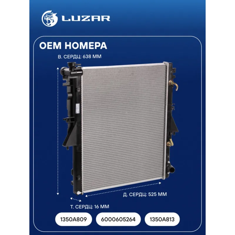 Радиатор охлаждения для автомобилей L200 (15-)/Pajero Sport (15-) 2.4D AT Характеристики: Артикул: LRc 11150 OEM номера: 1350A809, 6000605264, 1350A813 Трансмиссия: AT Кондиционер: + Длина сердцевины, мм: 525 Высота сердцевины, мм: 638 Толщина сердцевины, мм: 16 Сопутствующий товар: Радиаторы кондиционера (конденсеры): LRAC 11153; LRAC 1150 Подходит для авто: Mitsubishi L200 (15-), Pajero Sport (15-) Для проверки применяемости отправьте VIN автомобиля через вкладку "Есть вопросы о товаре?" Комплектация: Радиатор охлаждения Паспорт изделия Гарантия: от 1 года.