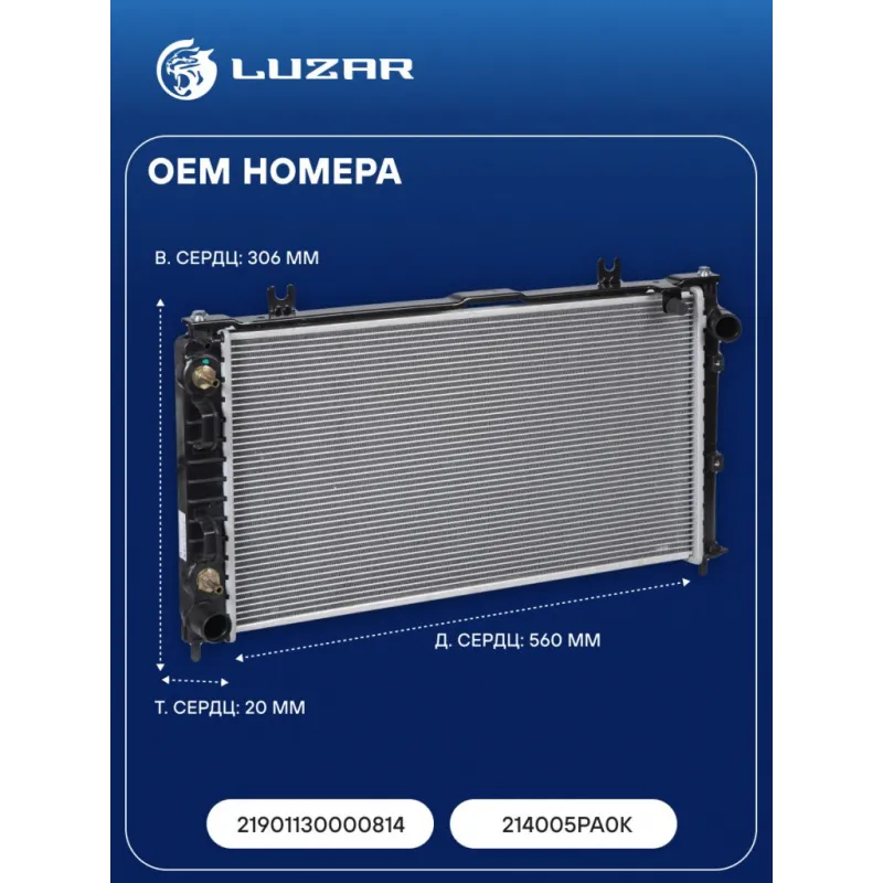 Радиатор охлаждения для автомобилей Лада 2190 "Гранта" (15-) AT (тип KDAC) (паяный) LRc 01195 LUZAR