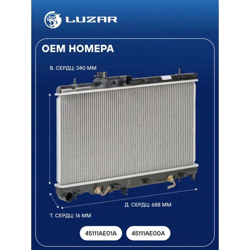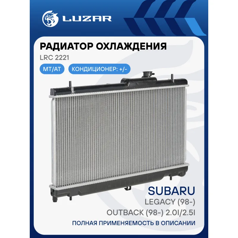 Радиатор охлаждения для автомобилей Legacy (98-)/Outback (98-) 2.0i/2.5i Характеристики: Артикул: LRc 2221 OEM номера: 45111AE01A, 45111AE00A Трансмиссия: MT/AT Кондиционер: +/- Длина сердцевины, мм: 688 Высота сердцевины, мм: 340 Толщина сердцевины, мм: 16 Тип сердцевины: паяная Сопутствующий товар: Крышки (пробки) радиатора: LL 1905 Подходит для авто: Subaru Legacy B12 (98-), Outback B12 (98-) Для проверки применяемости отправьте VIN автомобиля через вкладку "Есть вопросы о товаре?" Комплектация: Радиатор охлаждения Паспорт изделия Гарантия: от 1 года.