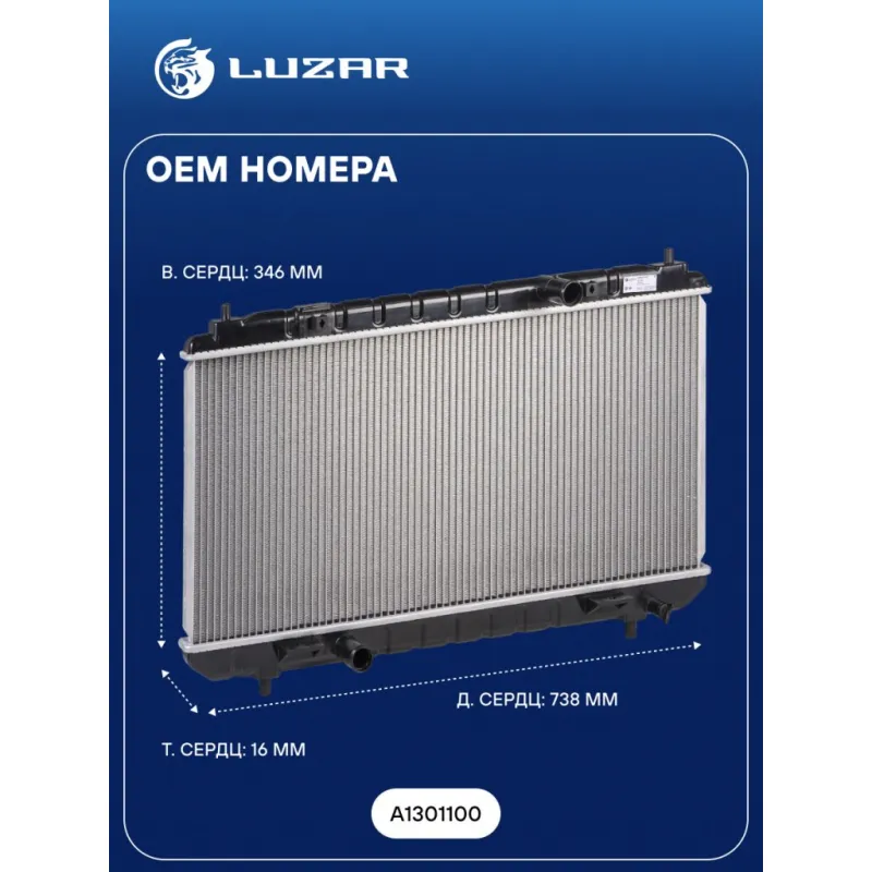 Радиатор охлаждения для автомобилей Lifan X50 (15-) 1.5i M/A Характеристики: Артикул: LRc 3021 OEM номера: A1301100 Трансмиссия: MT/AT Кондиционер: +/- Длина сердцевины, мм: 738 Высота сердцевины, мм: 346 Толщина сердцевины, мм: 16 Тип сердцевины: паяная Подходит для авто: Lifan X50 (15-) Для проверки применяемости отправьте VIN автомобиля через вкладку "Есть вопросы о товаре?" Комплектация: Радиатор охлаждения Паспорт изделия Гарантия: от 1 года.