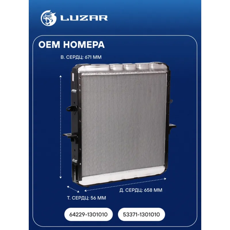 Радиатор охлаждения для автомобилей МАЗ 54323, 6303 с дв. ЯМЗ-238 Характеристики: Артикул: LRc 1229 OEM номера: 64229-1301010, 53371-1301010 Трансмиссия: MT Кондиционер: - Длина сердцевины, мм: 658 Высота сердцевины, мм: 671 Толщина сердцевины, мм: 56 Тип сердцевины: паяная Материал сердцевины: алюминий Материал бачков: алюминий Тип конструкции: с металлической рамой Подходит для авто: МАЗ 5337, 5432, 5516, 5336, 6303, 5433 Для проверки применяемости отправьте VIN автомобиля через вкладку "Есть вопросы о товаре?" Комплектация: Радиатор охлаждения Паспорт изделия Гарантия: от 1 года.