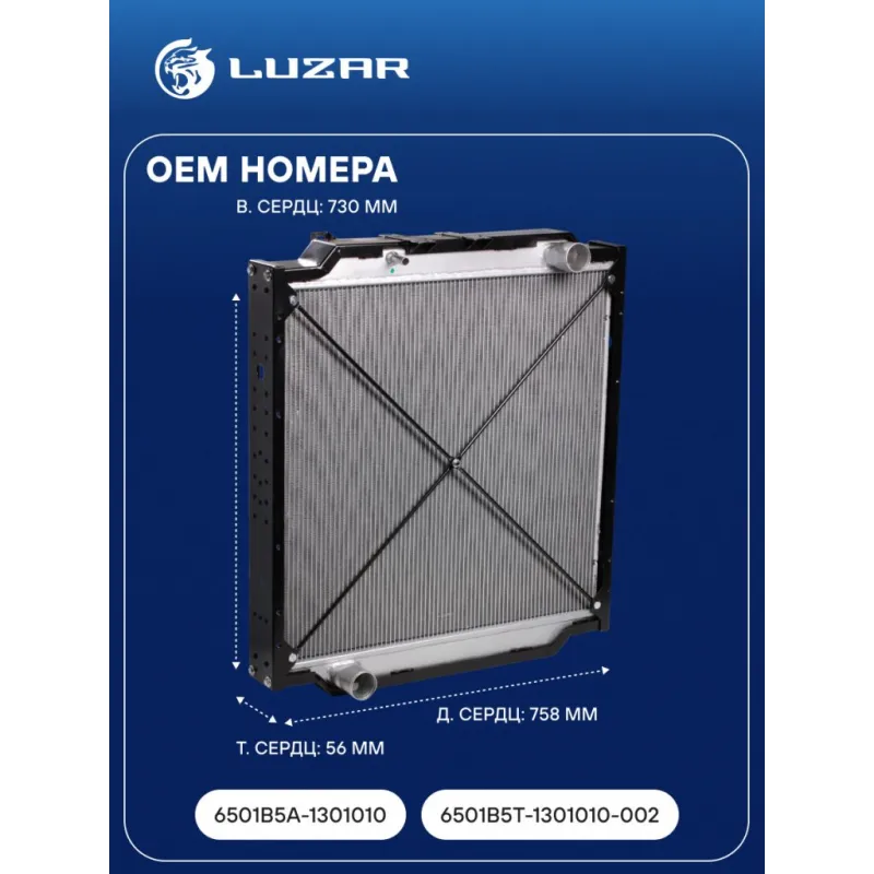 Радиатор охлаждения для автомобилей МАЗ 6501B5 ЯМЗ-536 Характеристики: Артикул: LRc 12601 OEM номера: 6501B5A-1301010, 6501В5Т-1301010-002, 6501В5А-1301010, 6501B5T-1301010-002 Трансмиссия: MT Кондиционер: +/- Длина сердцевины, мм: 758 Высота сердцевины, мм: 730 Толщина сердцевины, мм: 56 Тип сердцевины: паяная Материал сердцевины: алюминий Материал бачков: алюминий Тип конструкции: с металлической рамой Подходит для авто: МАЗ 6302, 6312, 5440B5, 6501, 5550 Для проверки применяемости отправьте VIN автомобиля через вкладку "Есть вопросы о товаре?" Комплектация: Радиатор охлаждения Паспорт изделия Гарантия: от 1 года.