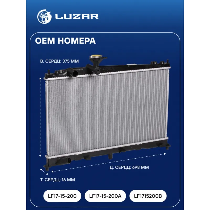 Радиатор охлаждения для автомобилей Mazda 6 (GG) (02-) MT Характеристики: Артикул: LRc 25FA OEM номера: LF17-15-200, LF17-15-200A, LF1715200B Трансмиссия: MT Кондиционер: +/- Длина сердцевины, мм: 698 Высота сердцевины, мм: 375 Толщина сердцевины, мм: 16 Тип сердцевины: паяная Материал сердцевины: алюминий Материал бачков: пластик Сопутствующий товар: Электровентиляторы охлаждения: LFK 25FA Сопутствующий товар: Радиаторы кондиционера (конденсеры): LRAC 2510 Подходит для авто: Mazda 6 (02-) Для проверки применяемости отправьте VIN автомобиля через вкладку "Есть вопросы о товаре?" Комплектация: Радиатор охлаждения Паспорт изделия Гарантия: от 1 года.