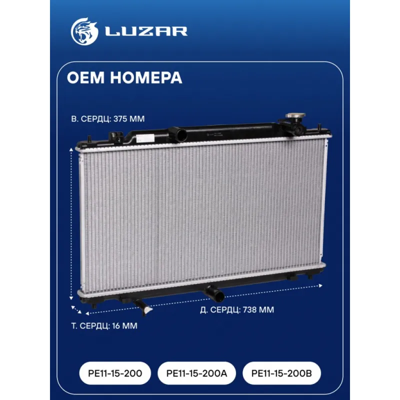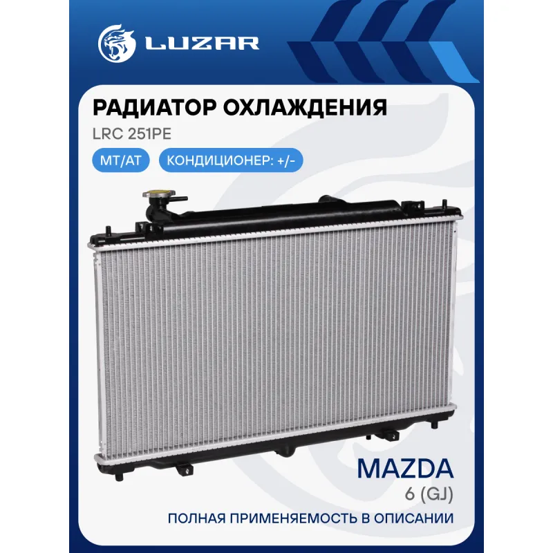 Радиатор охлаждения для автомобилей Mazda 6 (GJ) (12-) Характеристики: Артикул: LRc 251PE OEM номера: PE11-15-200, PE11-15-200A, PE11-15-200B Трансмиссия: MT/AT Кондиционер: +/- Длина сердцевины, мм: 738 Высота сердцевины, мм: 375 Толщина сердцевины, мм: 16 Тип сердцевины: паяная Материал сердцевины: алюминий Материал бачков: пластик Сопутствующий товар: Электровентиляторы охлаждения: LFK 2570 Сопутствующий товар: Радиаторы кондиционера (конденсеры): LRAC 251PE Подходит для авто: Mazda 6 (13-) Для проверки применяемости отправьте VIN автомобиля через вкладку "Есть вопросы о товаре?" Комплектация: Радиатор охлаждения Паспорт изделия Гарантия: от 1 года.