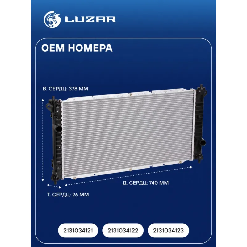 Радиатор охлаждения для автомобилей New Actyon/Korando (10-) MT Характеристики: Артикул: LRc 1755 OEM номера: 2131034121, 2131034122, 2131034123 Трансмиссия: MT Кондиционер: +/- Длина сердцевины, мм: 740 Высота сердцевины, мм: 378 Толщина сердцевины, мм: 26 Тип сердцевины: паяная Материал сердцевины: алюминий Материал бачков: пластик Подходит для авто: SsangYong Korando C (10-), Actyon II (10-) Для проверки применяемости отправьте VIN автомобиля через вкладку "Есть вопросы о товаре?" Комплектация: Радиатор охлаждения Паспорт изделия Гарантия: от 1 года.