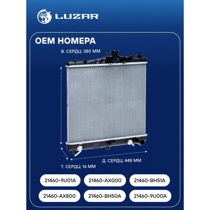 Радиатор охлаждения для автомобилей Note (06-)/Micra (02-) AT Характеристики: Артикул: LRc 141AX OEM номера: 21460-AX800, 21460-BH50A, 21460-9U00A, 21460-9U01A, 21460-AX000, 21460-BH51A Трансмиссия: AT Кондиционер: +/- Длина сердцевины, мм: 448 Высота сердцевины, мм: 380 Толщина сердцевины, мм: 16 Сопутствующий товар: Электровентиляторы охлаждения: LFK 1411 Сопутствующий товар: Радиаторы кондиционера (конденсеры): LRAC 14AX Сопутствующий товар: Крышки (пробки) радиатора: LL 0809 Сопутствующий товар: Крышки (пробки) расширительного бачка: LL 0998 Подходит для авто: Nissan Note (06-), Micra K12 (02-) Для проверки применяемости отправьте VIN автомобиля через вкладку "Есть вопросы о товаре?" Комплектация: Радиатор охлаждения Паспорт изделия Гарантия: от 1 года.