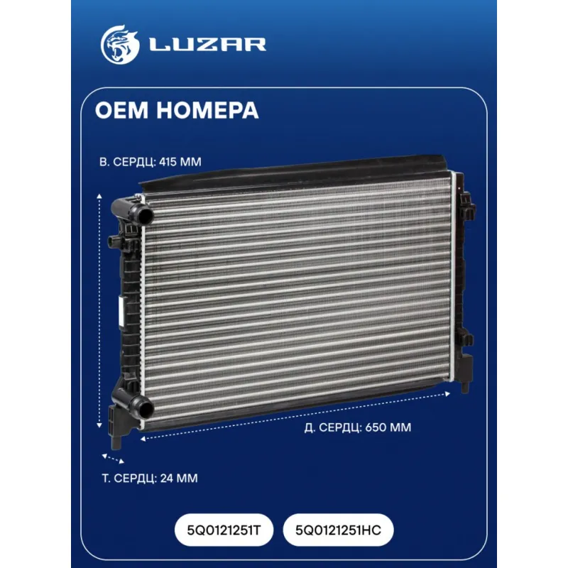 Радиатор охлаждения для автомобилей Octavia A7 (13-)/Golf VII (12-) 1.6i Характеристики: Артикул: LRc 1851 OEM номера: 5Q0121251T, 5Q0121251HC Сопутствующий товар: Элементы для уплотнения соединений: LGS 0032 Трансмиссия: MT/AT Кондиционер: +/- Длина сердцевины, мм: 650 Высота сердцевины, мм: 415 Толщина сердцевины, мм: 24 Тип сердцевины: сборная Сопутствующий товар: Электровентиляторы охлаждения: LFK 1814; LFK 1816 Сопутствующий товар: Радиаторы кондиционера (конденсеры): LRAC 1851 Подходит для авто: Skoda Octavia A7 (13-) Volkswagen Golf VII (12-) Для проверки применяемости отправьте VIN автомобиля через вкладку "Есть вопросы о товаре?" Комплектация: Радиатор охлаждения Гарантийный талон Гарантия: от 1 года.