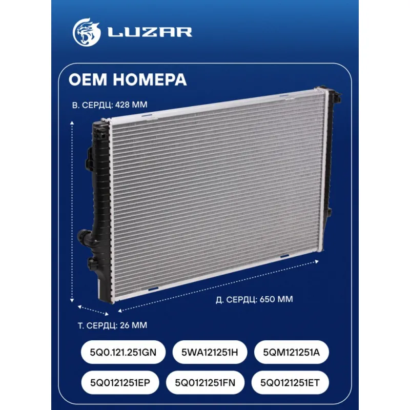 Радиатор охлаждения для автомобилей Octavia A7 (13-)/Tiguan (16-) 1.8T/2.0T Характеристики: Артикул: LRc 1854 OEM номера: 5Q0121251EP, 5Q0121251FN, 5Q0121251ET, 5Q0.121.251GN, 5WA121251H, 5QM121251A Сопутствующий товар: Радиаторы интеркулера (онв): LRIC 1857 Сопутствующий товар: Элементы для уплотнения соединений: LGS 0032 Трансмиссия: MT/AT Кондиционер: +/- Длина сердцевины, мм: 650 Высота сердцевины, мм: 428 Толщина сердцевины, мм: 26 Сопутствующий товар: Электровентиляторы охлаждения: LFc 18K2; LFK 1812; LFK 1814; LFK 1816; LFK 18K2 Сопутствующий товар: Электровентиляторы кондиционера: LFAC 18K0 Сопутствующий товар: Радиаторы кондиционера (конденсеры): LRAC 1851 Сопутствующий товар: Крышки (пробки) расширительного бачка: LL 1835 Подходит для авто: Volkswagen Golf VII (12-), Tiguan (16-), Passat B8 (15-) Skoda Octavia A7 (13-), Octavia A7 (13-), Superb III (15-) Seat Leon (12-) Для проверки применяемости отправьте VIN автомобиля через вкладку "Есть вопросы о товаре?" Комплектация: Радиатор охлаждения Паспорт изделия Гарантия: от 1 года.