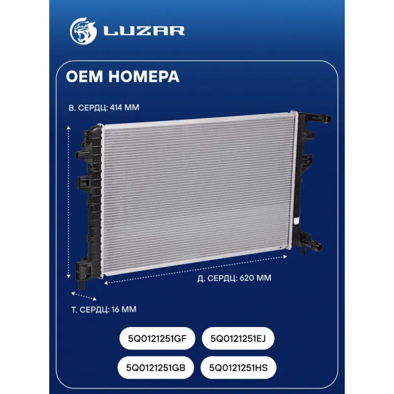 Радиатор охлаждения для автомобилей Octavia A7 (13-)/Tiguan (16-) (жидк. интеркулер) (сердцевина 16мм) Характеристики: Артикул: LRc 18GF OEM номера: 5Q0121251GF, 5Q0121251EJ, 5Q0121251GB, 5Q0121251HS Материал сердцевины: алюминий Материал бачков: пластик Тип сердцевины: паяная Сопутствующий товар: Радиаторы интеркулера (онв): LRIC 189B Сопутствующий товар: Элементы для уплотнения соединений: LGS 0032 Сопутствующий товар: Бачки расширительные: LET 1851 Сопутствующий товар:: LRc 18EM Трансмиссия: MT/AMT Кондиционер: +/- Длина сердцевины, мм: 620 Высота сердцевины, мм: 414 Толщина сердцевины, мм: 16 Сопутствующий товар: Электровентиляторы охлаждения: LFc 18K2; LFK 1814; LFK 1816; LFK 18K2 Сопутствующий товар: Электровентиляторы кондиционера: LFAC 18K0 Сопутствующий товар: Радиаторы кондиционера (конденсеры): LRAC 1851 Сопутствующий товар: Крышки (пробки) расширительного бачка: LL 1835 Подходит для авто: Skoda Kodiaq (16-), Octavia A7 (13-), Superb III (15-), Karoq (17-) Audi A3 (12-) Volkswagen Golf VII (12-), Tiguan (16-) Для проверки применяемости отправьте VIN автомобиля через вкладку "Есть вопросы о товаре?" Комплектация: Радиатор охлаждения Паспорт изделия Гарантия: от 1 года.