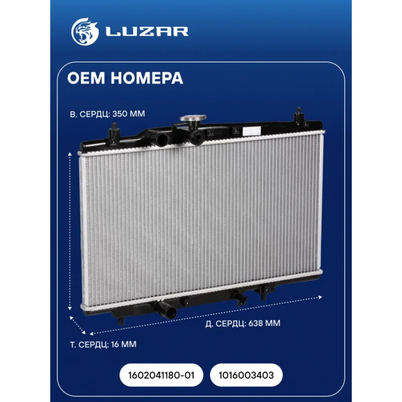 Радиатор охлаждения для автомобилей Geely Otaka (07-)/MK (06-)/MK Cross (10-) 1.5i MT Характеристики: Артикул: LRc 3003 OEM номера: 1602041180-01, 1016003403 Трансмиссия: MT Кондиционер: +/- Длина сердцевины, мм: 638 Высота сердцевины, мм: 350 Толщина сердцевины, мм: 16 Подходит для авто: Geely MK (08-), Оtaka (07-), MK Cross (10-) Для проверки применяемости отправьте VIN автомобиля через вкладку "Есть вопросы о товаре?" Комплектация: Радиатор охлаждения Паспорт изделия Гарантия: от 1 года.