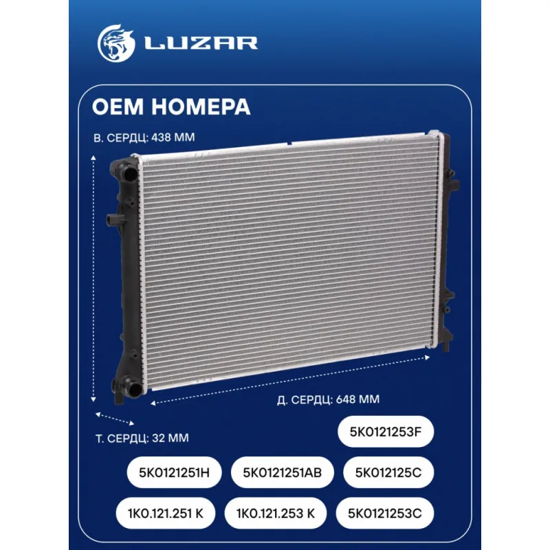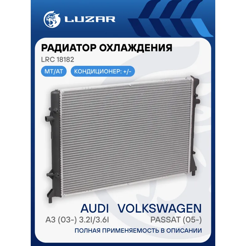 Радиатор охлаждения для автомобилей Passat (05-)/Audi A3 (03-) 3.2i/3.6i Характеристики: Артикул: LRc 18182 OEM номера: 1K0.121.251 K, 1K0.121.253 K, 5K0121253C, 5K0121251H, 5K0121251AB, 5K012125C, 5K0121253F Сопутствующий товар: Элементы для уплотнения соединений: LGS 0032 Трансмиссия: MT/AT Кондиционер: +/- Длина сердцевины, мм: 648 Высота сердцевины, мм: 438 Толщина сердцевины, мм: 32 Сопутствующий товар: Электровентиляторы охлаждения: LFc 18K2; LFK 18K2 Сопутствующий товар: Электровентиляторы кондиционера: LFAC 18K0 Сопутствующий товар: Радиаторы кондиционера (конденсеры): LRAC 1811J; LRAC 181D; LRAC 18L3 Сопутствующий товар: Крышки (пробки) расширительного бачка: LL 1835 Сопутствующий товар: Блоки охлаждения (радиатор + конденсор + вентилятор): LRK 1840 Подходит для авто: Volkswagen Passat B6 (05-), Passat B6 (05-), Golf V (03-), Jetta (05-) Для проверки применяемости отправьте VIN автомобиля через вкладку "Есть вопросы о товаре?" Комплектация: Радиатор охлаждения Паспорт изделия Гарантия: от 1 года.