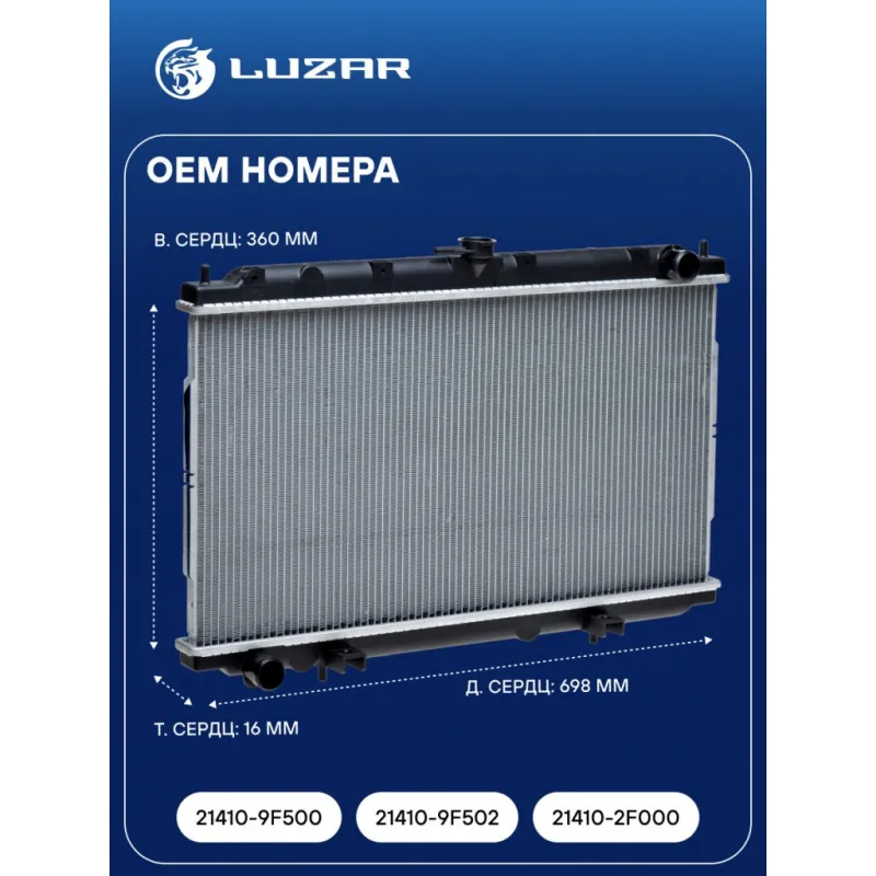 Радиатор охлаждения для автомобилей Primera P11 (96-) MT Характеристики: Артикул: LRc 14F9 OEM номера: 21410-9F500, 21410-9F502, 21410-2F000 Трансмиссия: MT Кондиционер: +/- Длина сердцевины, мм: 698 Высота сердцевины, мм: 360 Толщина сердцевины, мм: 16 Сопутствующий товар: Крышки (пробки) радиатора: LL 0809 Подходит для авто: Nissan Primera P11 (96-) Для проверки применяемости отправьте VIN автомобиля через вкладку "Есть вопросы о товаре?" Комплектация: Радиатор охлаждения Паспорт изделия Гарантия: от 1 года.