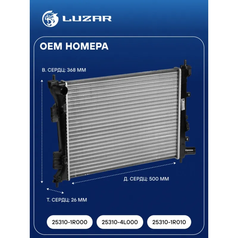 Радиатор охлаждения для автомобилей Solaris (10-)/Rio (10-) MT (сборный) Характеристики: Артикул: LRc 08L4 OEM номера: 25310-1R000, 25310-4L000, 25310-1R010 Трансмиссия: MT Кондиционер: +/- Длина сердцевины, мм: 500 Высота сердцевины, мм: 368 Толщина сердцевины, мм: 26 Тип сердцевины: сборная Сопутствующий товар: Электровентиляторы охлаждения: LFK 08L0; LFK 08L4 Сопутствующий товар: Радиаторы кондиционера (конденсеры): LRAC 08L4 Сопутствующий товар: Патрубки охлаждения (комплект): LPK 08031, LPK 08032, LPK 08033 Сопутствующий товар: Блоки охлаждения (радиатор + конденсор + вентилятор): LRK 081L4; LRK 081V4; LRK 08L4 Аналог: LRc 0800 (паяная сердцевина) Подходит для авто: Kia Rio III (11-) Hyundai Solaris I (10-) Для проверки применяемости отправьте VIN автомобиля через вкладку "Есть вопросы о товаре?" Комплектация: Радиатор охлаждения Паспорт изделия Гарантия: от 1 года.