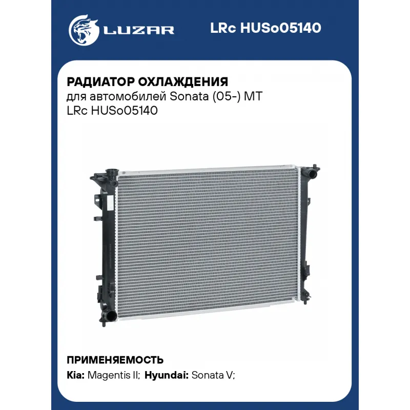 Радиатор охлаждения для автомобилей Sonata (05-) MT Характеристики: Артикул: LRc HUSo05140 OEM номера: 25310-3K140 Материал сердцевины: алюминий Материал бачков: пластик Тип сердцевины: паяная Трансмиссия: MT Кондиционер: +/- Длина сердцевины, мм: 635 Высота сердцевины, мм: 438 Толщина сердцевины, мм: 16 Сопутствующий товар: Радиаторы кондиционера (конденсеры): LRAC 0839; LRAC 08E2; LRAC 08R0 Сопутствующий товар: Крышки (пробки) радиатора: LL 1905 Подходит для авто: Kia Magentis II (05-) Hyundai Sonata V (NF) (05-) Для проверки применяемости отправьте VIN автомобиля через вкладку "Есть вопросы о товаре?" Комплектация: Радиатор охлаждения Паспорт изделия Гарантия: от 1 года.