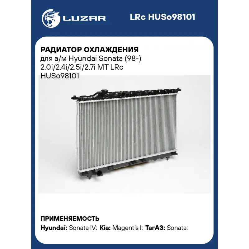Радиатор охлаждения для а/м Hyundai Sonata (98-) 2.0i/2.4i/2.5i/2.7i MT Характеристики: Артикул: LRc HUSo98101 OEM номера: 25310-3C001, 25310-38001, S2531-038001 Трансмиссия: MT Кондиционер: +/- Длина сердцевины, мм: 737 Высота сердцевины, мм: 420 Толщина сердцевины, мм: 16 Сопутствующий товар: Электровентиляторы охлаждения: LFK 0805; LFK 0806 Сопутствующий товар: Электровентиляторы кондиционера: LFAC 0805 Сопутствующий товар: Радиаторы кондиционера (конденсеры): LRAC 0838; LRAC 08383; LRAC 08384 Сопутствующий товар: Крышки (пробки) радиатора: LL 1905 Подходит для авто: Hyundai Sonata IV (EF) (98-) Kia Magentis I (01-) ТагАЗ Sonata (98-) Для проверки применяемости отправьте VIN автомобиля через вкладку "Есть вопросы о товаре?" Комплектация: Радиатор охлаждения Паспорт изделия Гарантия: от 1 года.