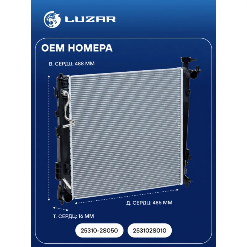 Радиатор охлаждения для автомобилей Sportage III (10-)/iX35 (10-) D AT (тип Dowoon) Характеристики: Артикул: LRc 081Y0 OEM номера: 25310-2S050, 253102S010 Трансмиссия: AT Кондиционер: +/- Длина сердцевины, мм: 485 Высота сердцевины, мм: 488 Толщина сердцевины, мм: 16 Сопутствующий товар: Радиаторы кондиционера (конденсеры): LRAC 0825; LRAC 0827 Сопутствующий товар: Крышки (пробки) радиатора: LL 1905 Подходит для авто: Kia Sportage III (10-) Hyundai iX35 (10-) Для проверки применяемости отправьте VIN автомобиля через вкладку "Есть вопросы о товаре?" Комплектация: Радиатор охлаждения Паспорт изделия Гарантия: от 1 года.