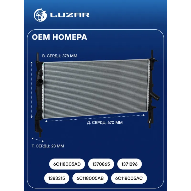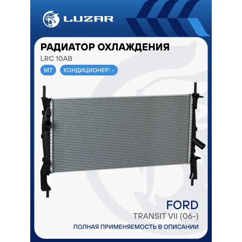 Радиатор охлаждения для а/м Transit (06-) A/C- Характеристики: Артикул: LRc 10AB OEM номера: 1383315, 6C118005AB, 6C118005AC, 6C118005AD, 1370865, 1371296 Трансмиссия: MT Кондиционер: - Длина сердцевины, мм: 670 Высота сердцевины, мм: 378 Толщина сердцевины, мм: 23 Тип сердцевины: сборная Материал сердцевины: алюминий Материал бачков: пластик Сопутствующий товар: Радиаторы кондиционера (конденсеры): LRAC 10CC Подходит для авто: Ford Transit VII (06-) Для проверки применяемости отправьте VIN автомобиля через вкладку "Есть вопросы о товаре?" Комплектация: Радиатор охлаждения Паспорт изделия Гарантия: от 1 года.