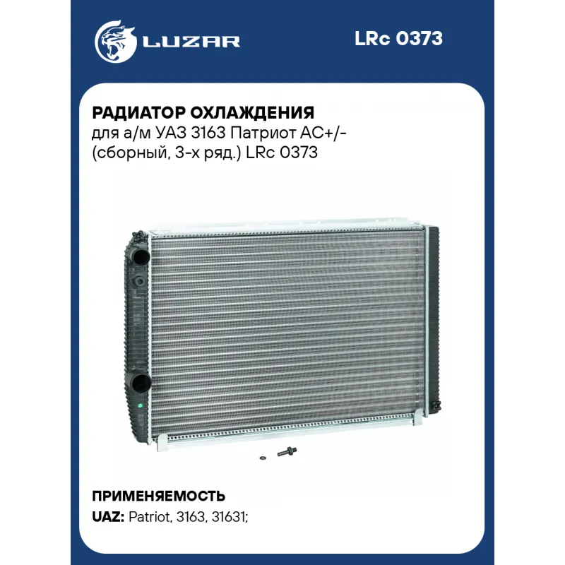 Радиатор охлаждения для а/м УАЗ 3163 Патриот АС+/- (сборный, 3-х ряд.) Характеристики: Артикул: LRc 0373 OEM номера: 31631-1301012П, 31631-1301012, 316300130101012, 31631А-1301010, 3163-1301010-30 Трансмиссия: MT Кондиционер: +/- Длина сердцевины, мм: 646 Высота сердцевины, мм: 451,5 Толщина сердцевины, мм: 42 Тип сердцевины: сборная, 3-х рядная Материал сердцевины: алюминий Материал бачков: пластик Сопутствующий товар: Электровентиляторы охлаждения: LFK 0361; LFK 0363; LFc 0360; LFc 0306 Сопутствующий товар: Радиаторы кондиционера (конденсеры): LRAC 0363; LRAC 03631 Сопутствующий товар: Патрубки охлаждения (комплект): LPK 03631, LPK 03151 Сопутствующий товар: Радиаторы интеркулера (онв): LRIC 0363 Аналог: LRc 0363b (паяная сердцевина) Особенности конструкции:: шаг ламелей сердцевины 1,2мм Подходит для авто: УАЗ Patriot (08-), 3163 (Patriot) (05-), 31631, Patriot (08-) Для проверки применяемости отправьте VIN автомобиля через вкладку "Есть вопросы о товаре?" Комплектация: Паспорт изделия - 1 шт Радиатор охлаждения - 1 шт Гарантия: от 1 года.
